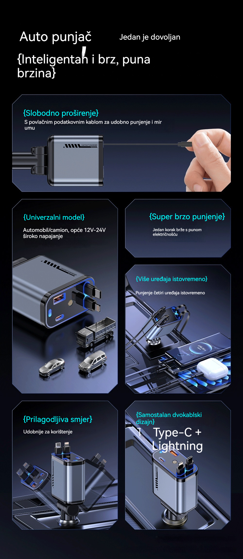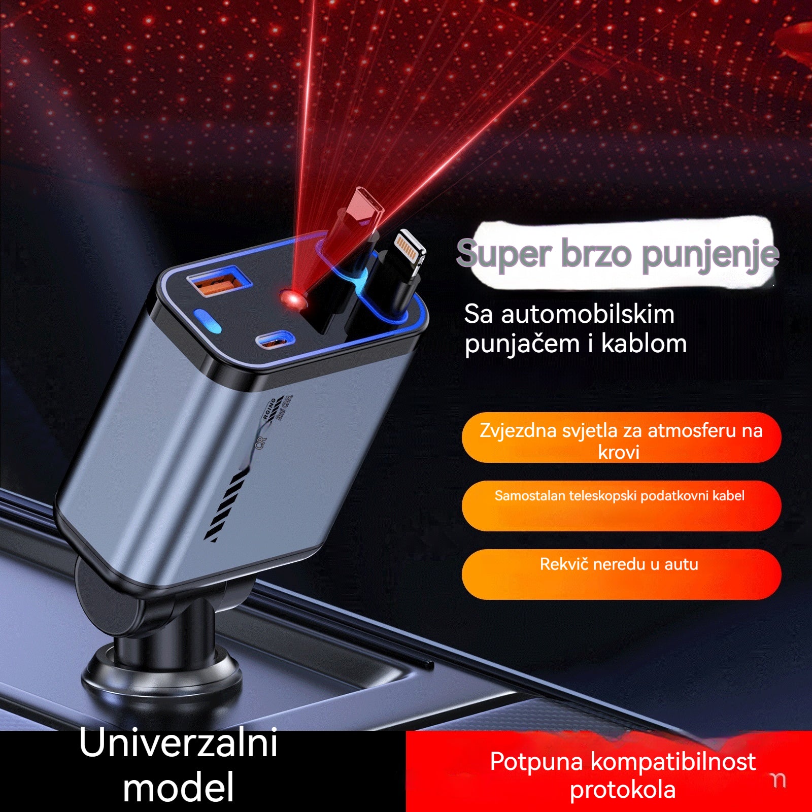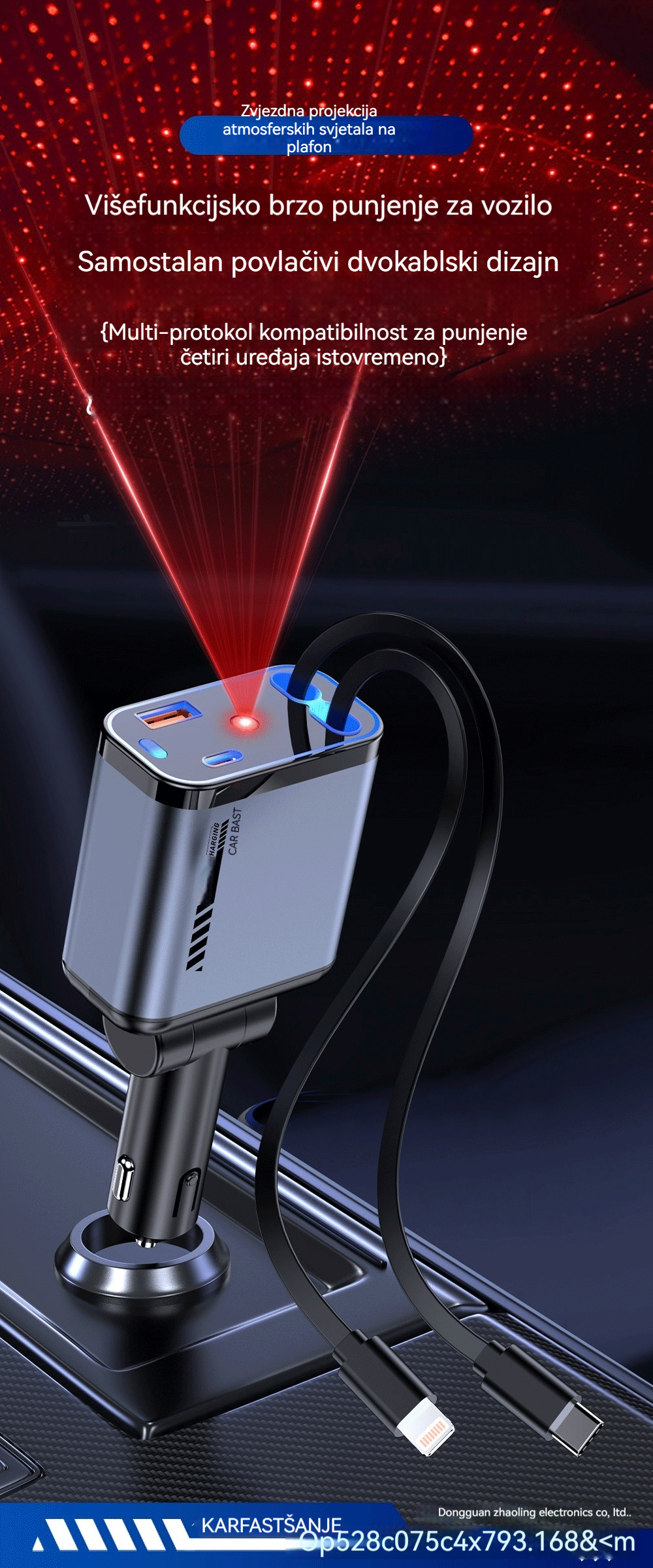 ⚡✨Ultra brzo auto punjač: dva sklopiva USB-C porta sa Starlight ambijentalnim svjetlom i inteligentnom zaštitom 🚗💫