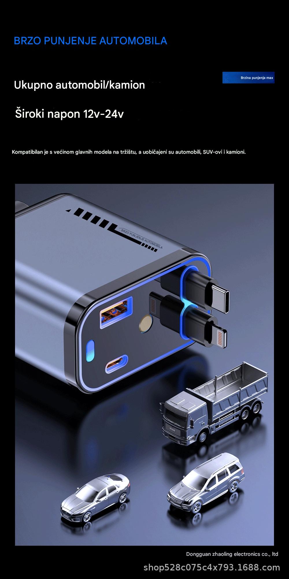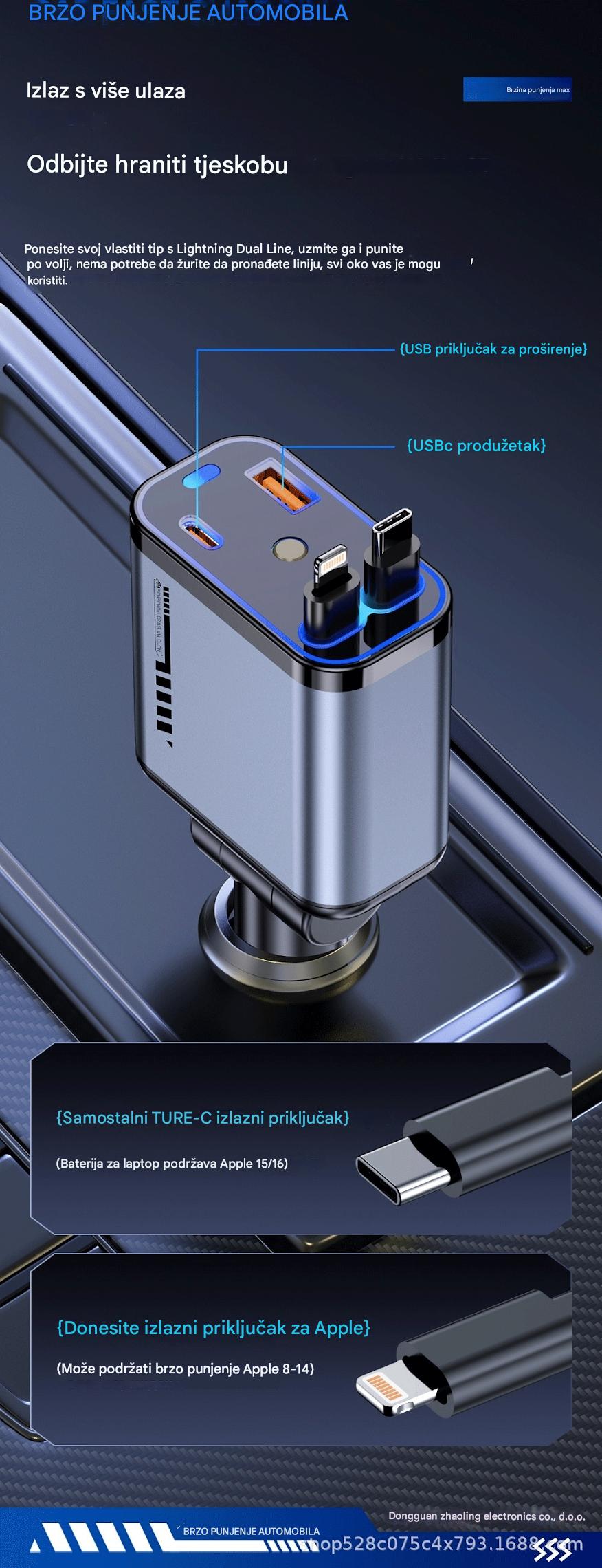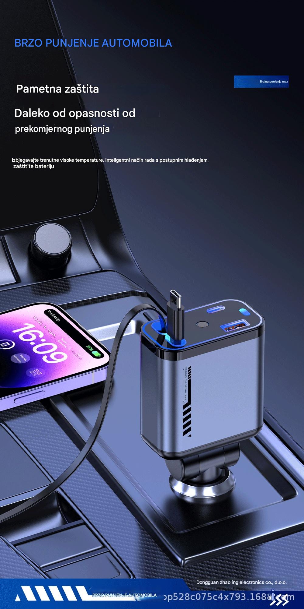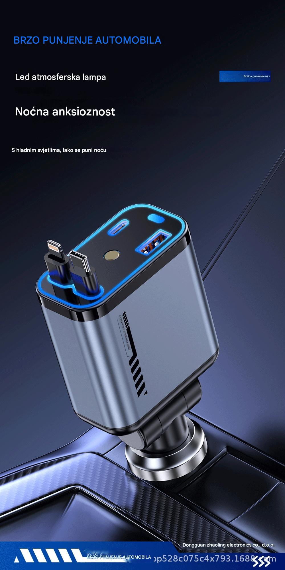 ⚡✨Ultra brzo auto punjač: dva sklopiva USB-C porta sa Starlight ambijentalnim svjetlom i inteligentnom zaštitom 🚗💫