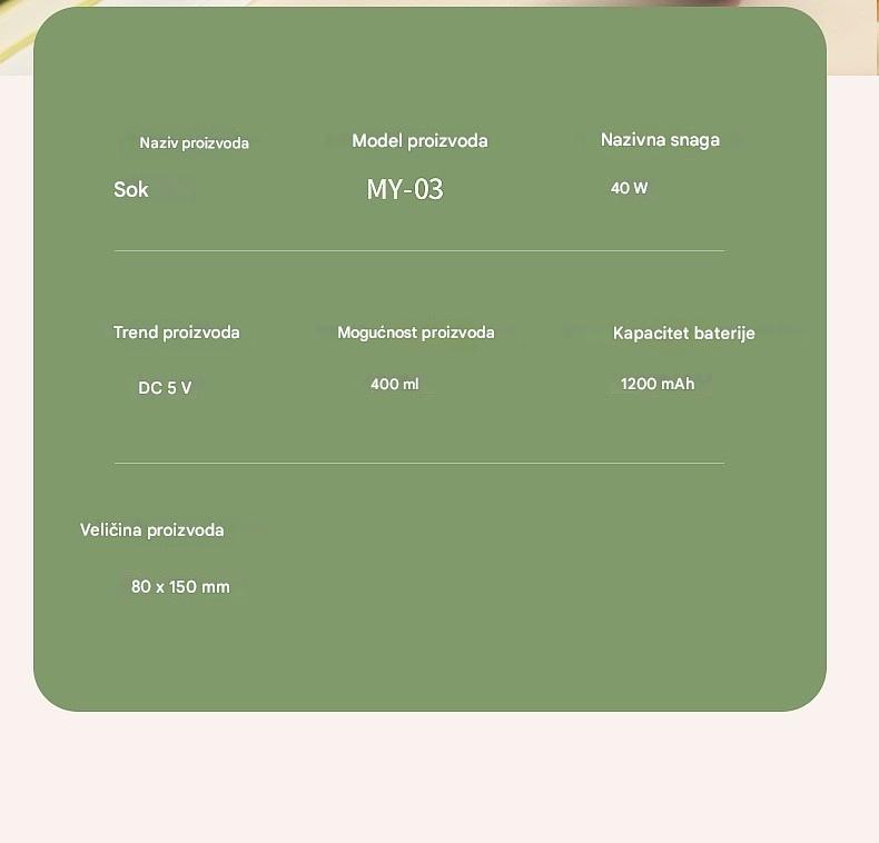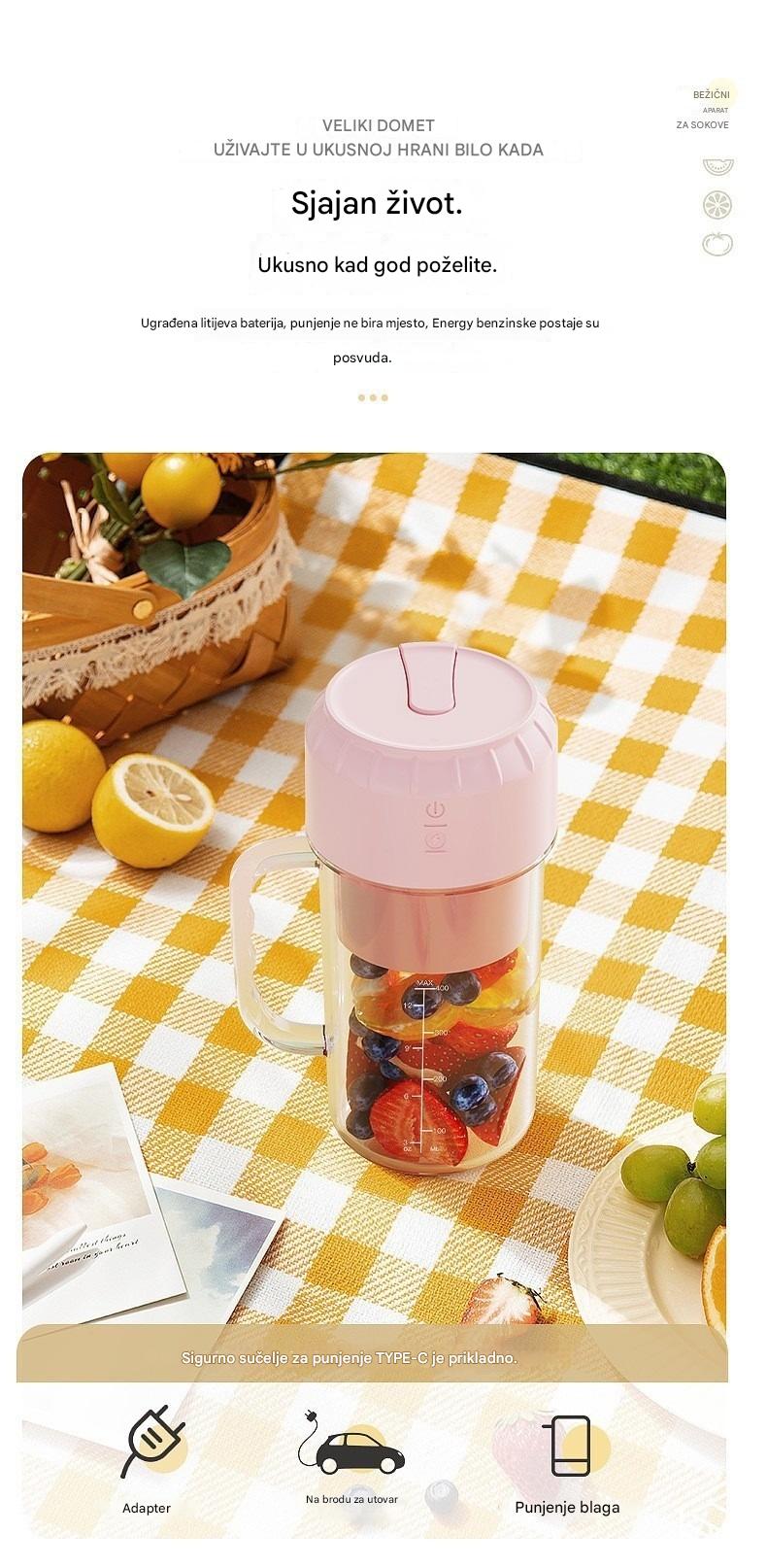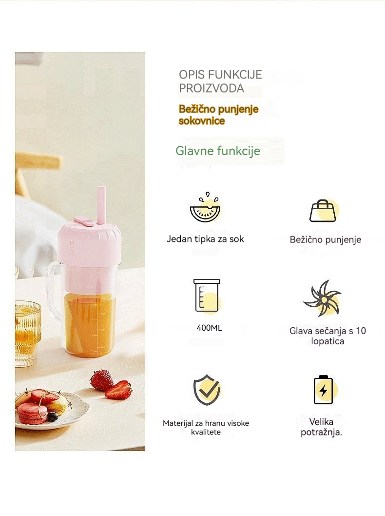 ✨🍎【400 ml】Prijenosni sokovnik — ponesite ga bilo kamo i uživajte u svježim, zdravim sokovima od voća i povrća u bilo kojem trenutku.