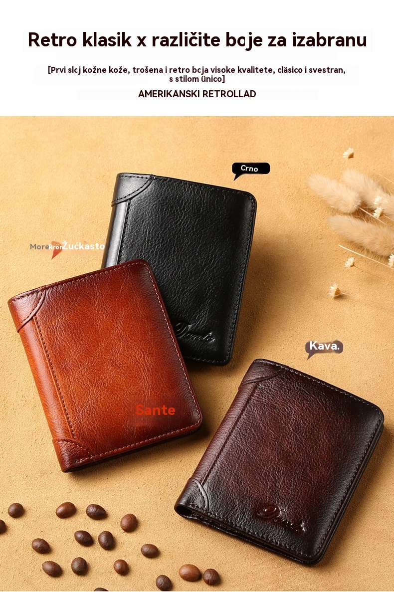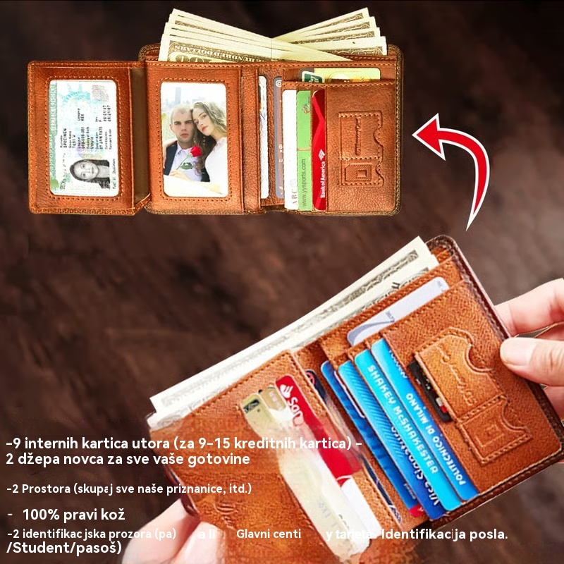 Novi muški protuprovalni novčanik od prave kože