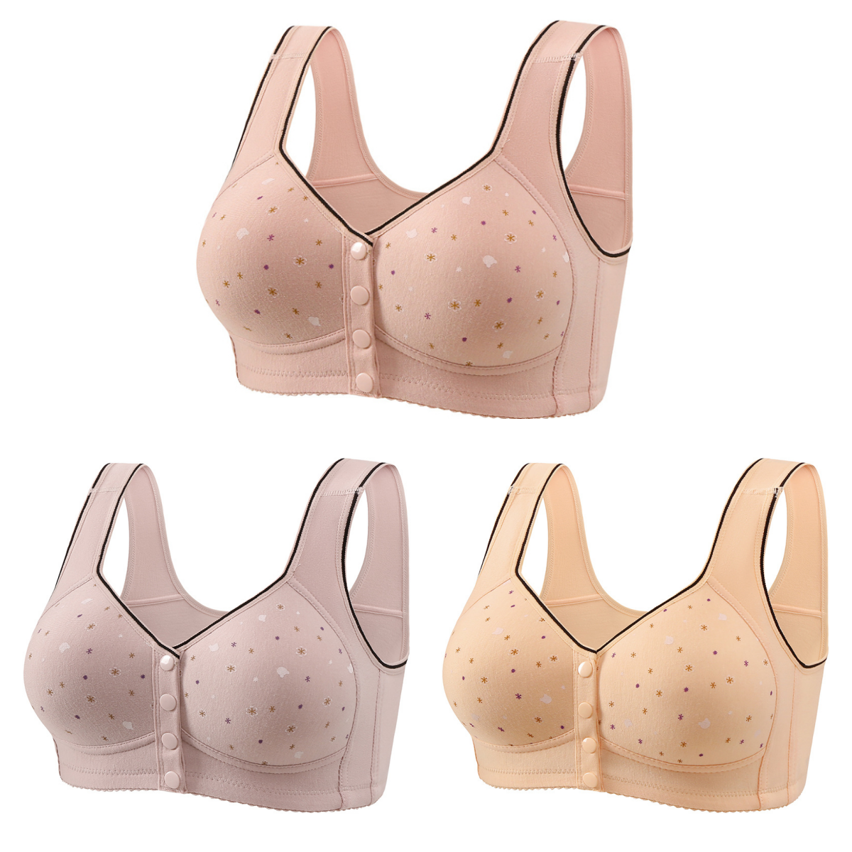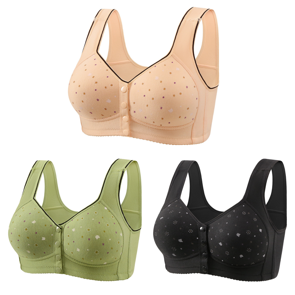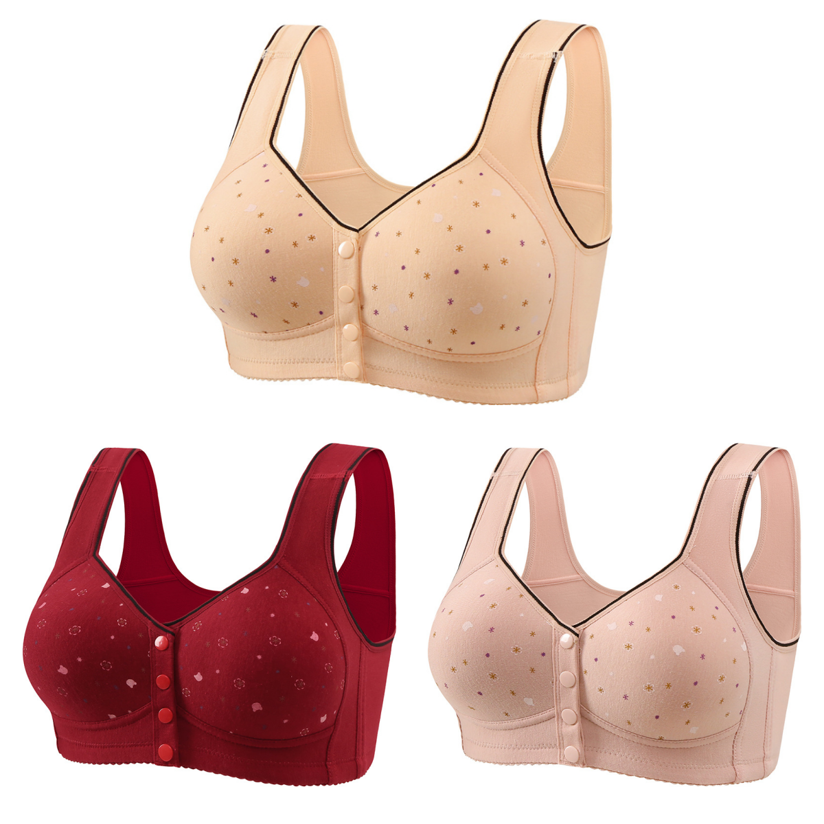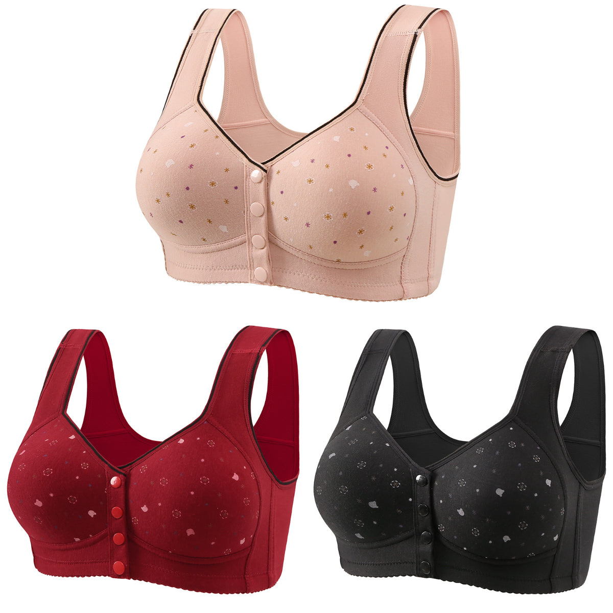😍【Paket 3 kosov】Ženski brezžični modrček z gumbom spredaj 【40-120kg】❤️Bumbac naravni antibakterijski udoben udoben