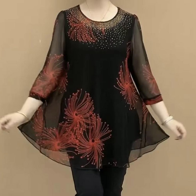 ✨👚【50% zniżki】💖2025 lato nowa moda elegancka damska koszula z szyfonu z nadrukiem, wygodna i oddychająca