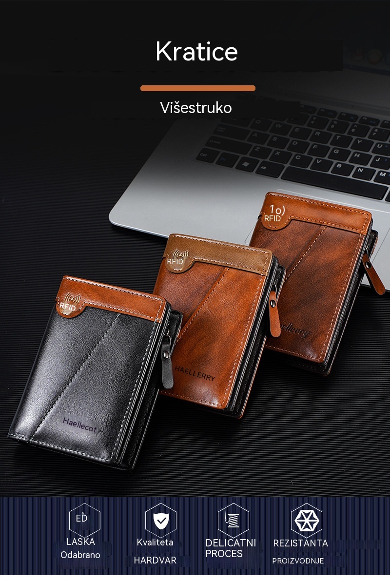 ✨Nowy, najwyższej jakości męski portfel w stylu retro, zapinany na zamek i wyposażony w funkcję RFID zabezpieczającą przed kradzieżą.