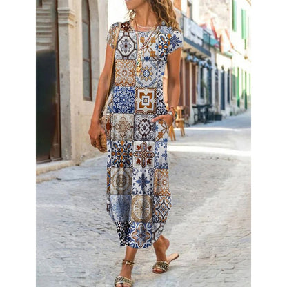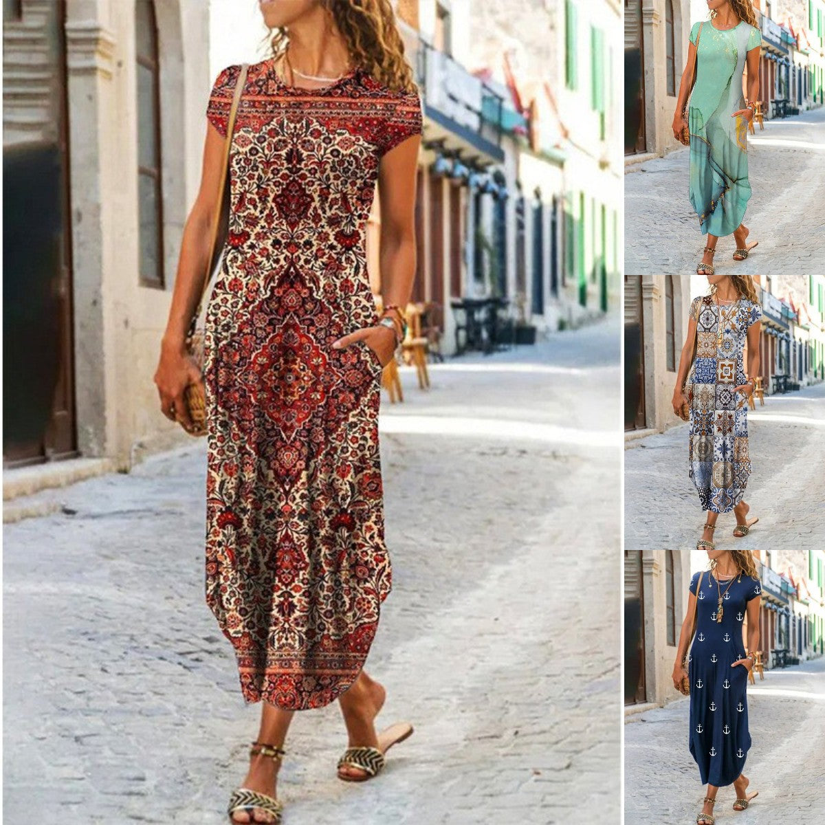👗✨👗✨【S-3XL】2025 Nowa damska luźna kieszonkowa sukienka z nadrukiem 3924281
