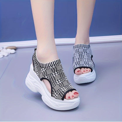 👞【34-42】2024 Popularne sportowe sandały z grubą podeszwą Fly na wysokim obcasie 3653543