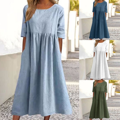 💥👗【S-5XL】2024 Bawełniana Casualowa Sukienka Z Kieszeniami--3718308