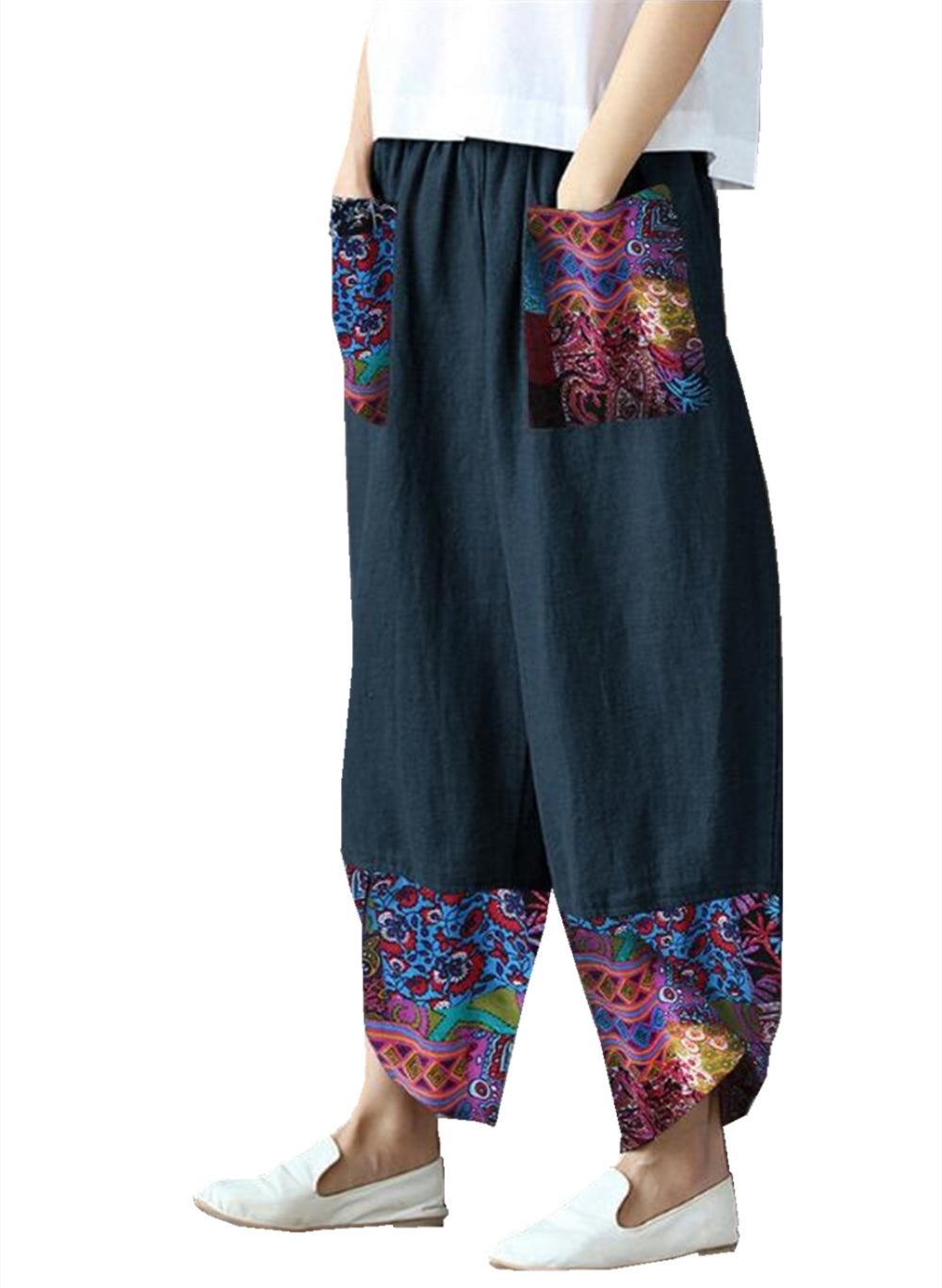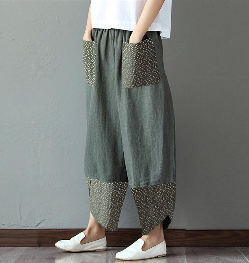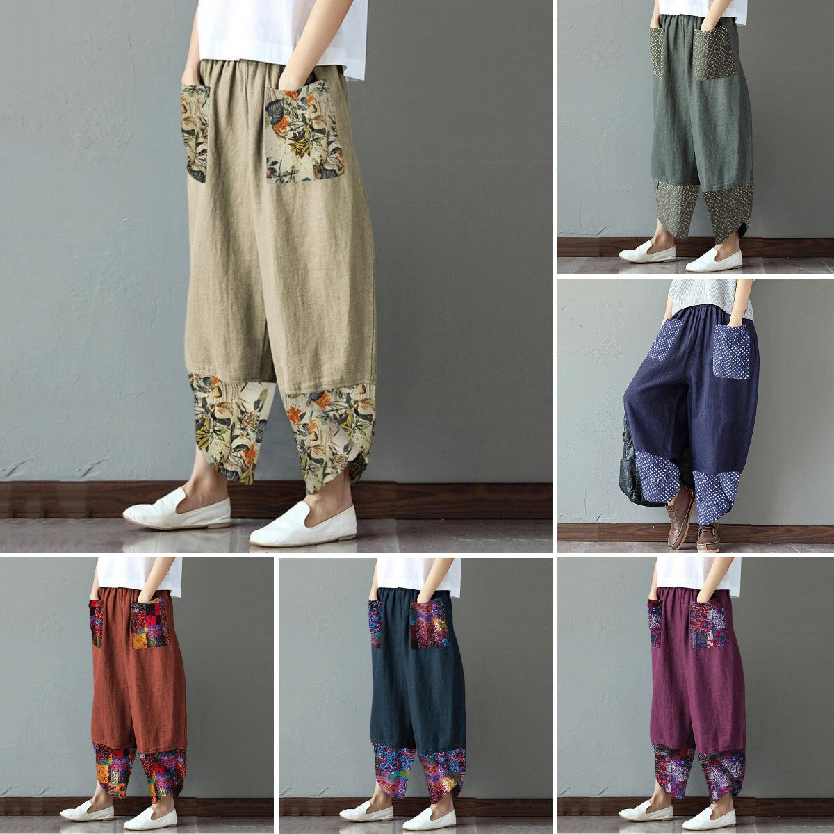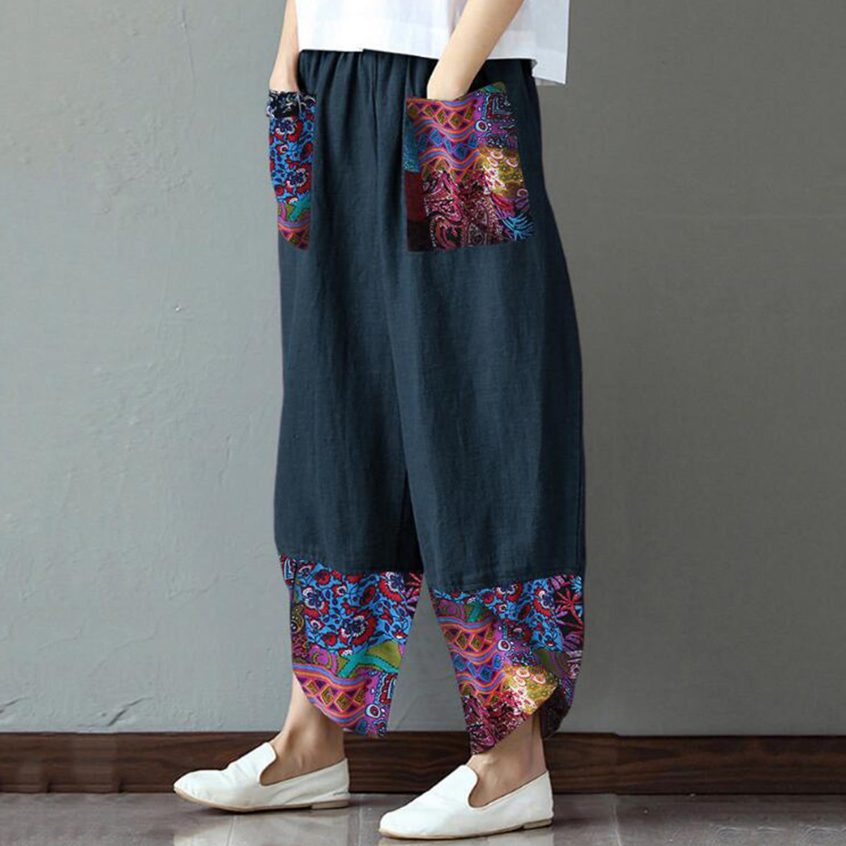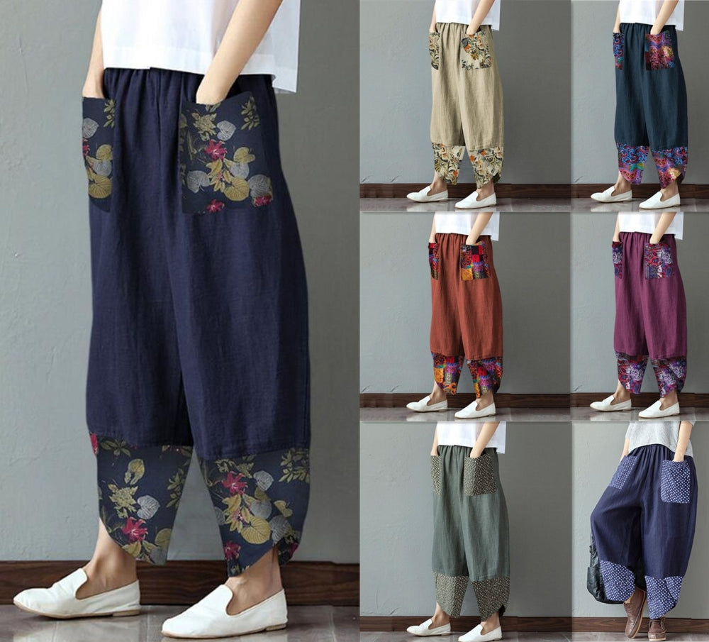 🔥👖【S-4XL】💖2025 nowe bawełniane i lniane spodnie z nadrukiem, szerokie nogawki, proste spodnie, wzory z nadrukiem, modne i trendy