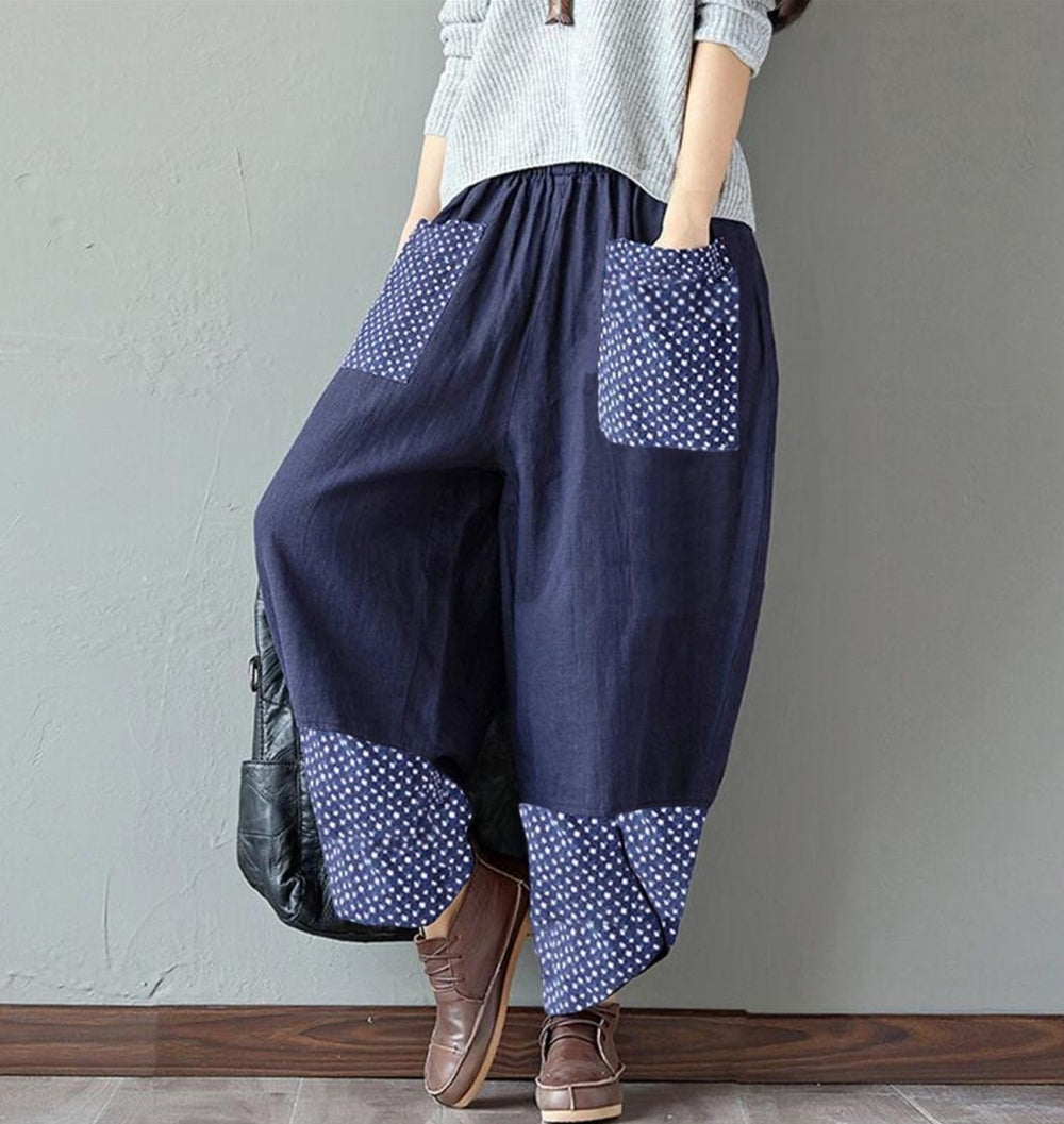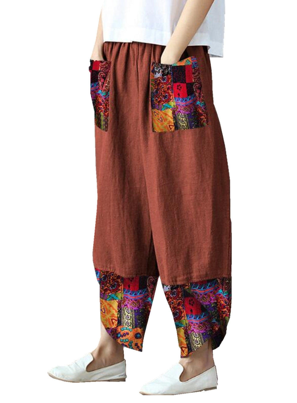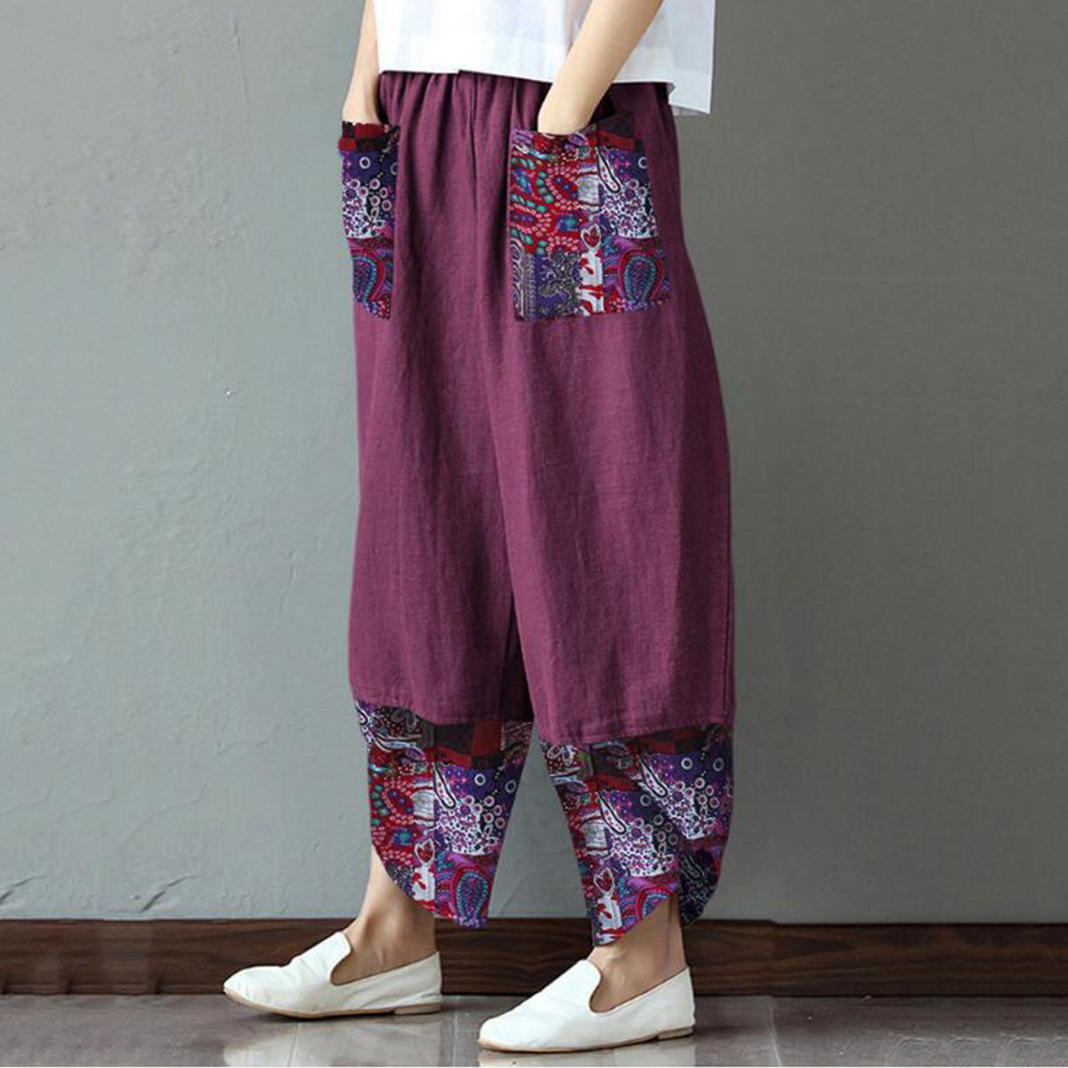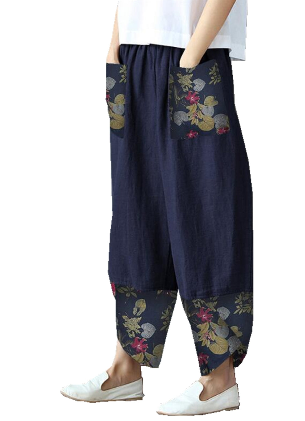 🔥👖【S-4XL】💖2025 nowe bawełniane i lniane spodnie z nadrukiem, szerokie nogawki, proste spodnie, wzory z nadrukiem, modne i trendy