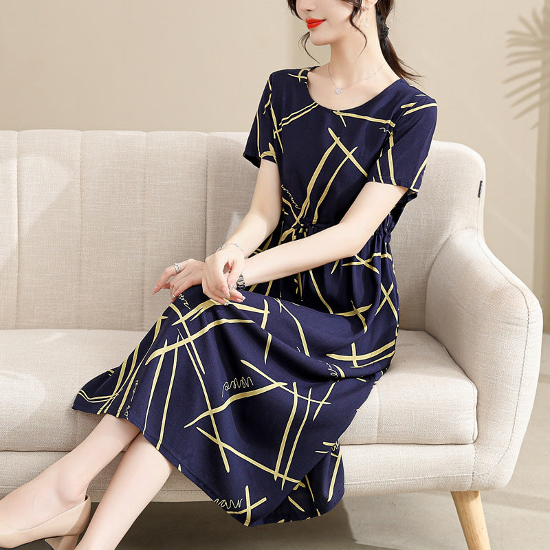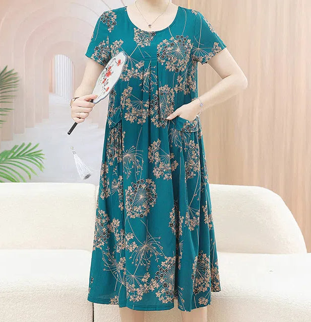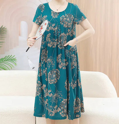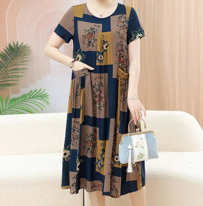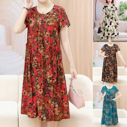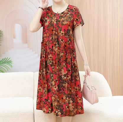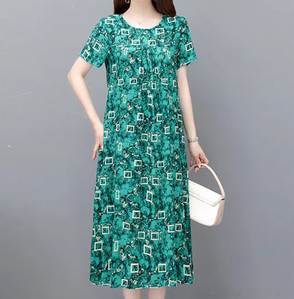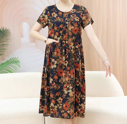 🔥👗🔥2024 nowa letnia sukienka z bawełnianego jedwabiu, elegancka sukienka w kwiaty duży rozmiar--3693073
