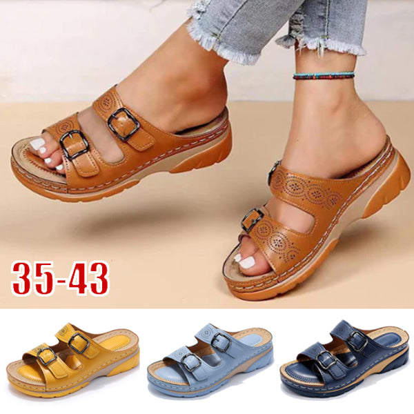 🔥👡Nowa promocja produktu 🌹💖[35-43] 2025 nowe letnie sandały na koturnie, regulowana klamra, wygodne dopasowanie