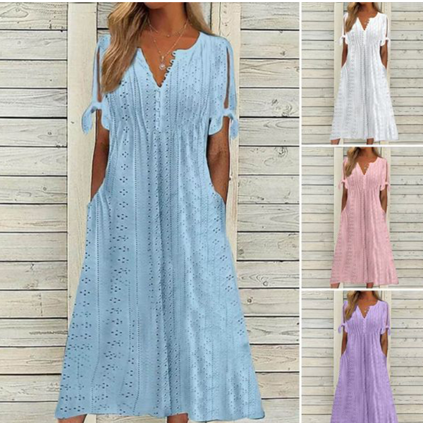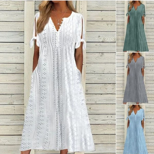 🔥🔥【S-5XL】👗 Prosta i wykwintna sukienka w jednolitym kolorze--3705177