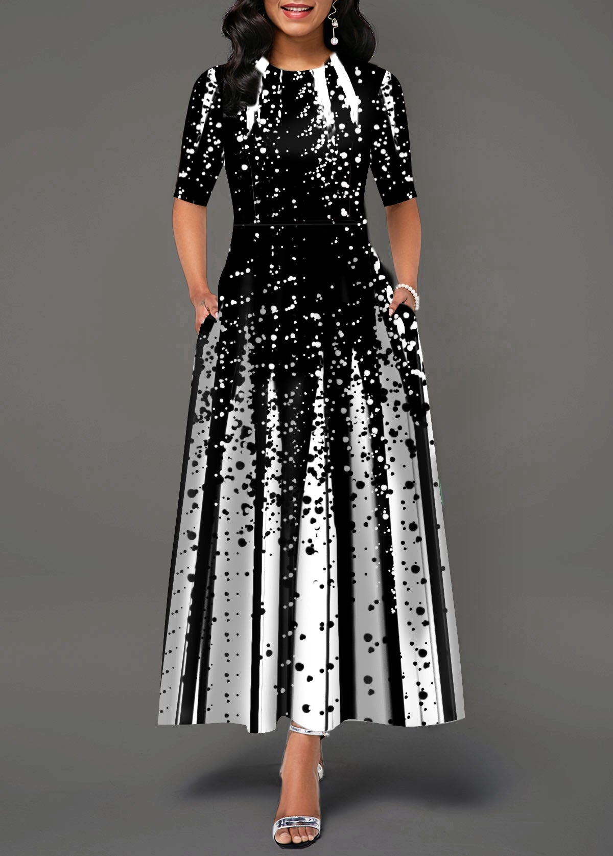 🔥S-5XL👗Elegancka sukienka z okrągłym dekoltem i długimi rękawami--3726679