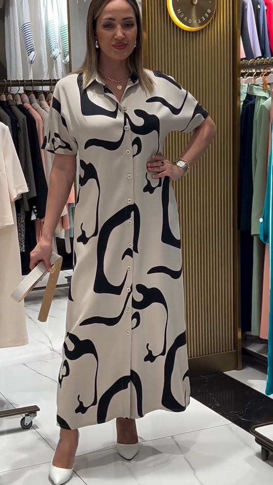 ✨【Wyprzedaż na koniec miesiąca – 50% zniżki na każdy produkt】👗【S-5XL】Elegancka sukienka z nadrukiem, podkreślająca talię