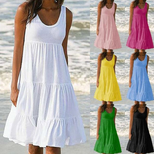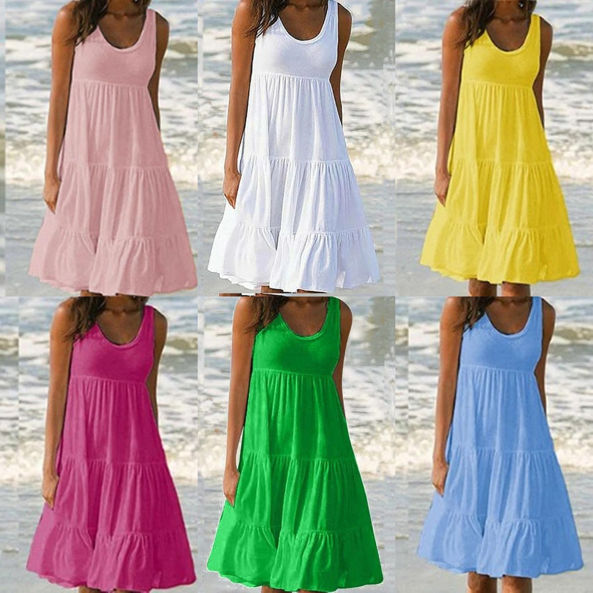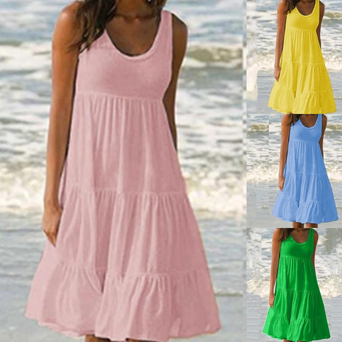 👗 【S-5XL】 Prosta sukienka w jednolitym kolorze-3686031