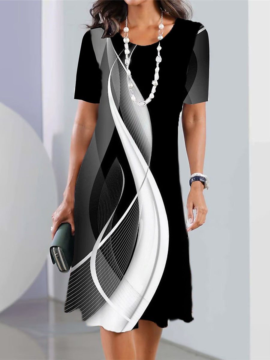 👗2024 damska elegancka sukienka z nadrukiem i okrągłym dekoltem 3668430
