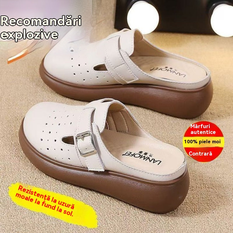 👡【35-40】Nowy letni styl: ręcznie szyte sandały damskie z grubej podeszwy z prawdziwej skóry - antypoślizgowe i oddychające