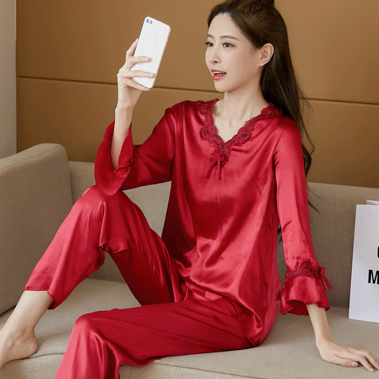 🔥🥼🧦 【S-4XL】 【Gorąca wyprzedaż】 Dwuczęściowy komplet piżam z lodowego jedwabiu 3708921