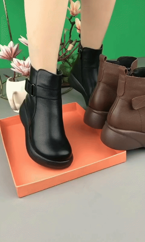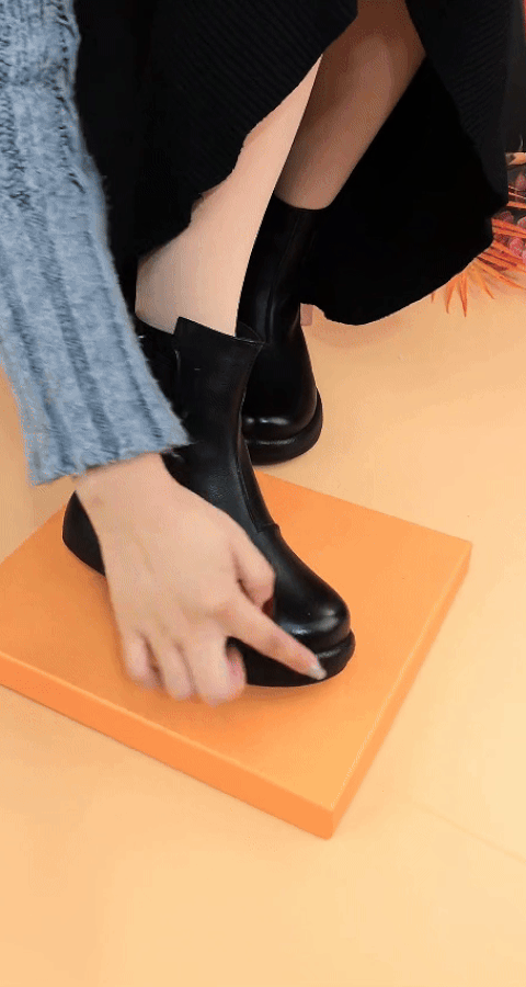 【35-40】Nowe buty zimowe z prawdziwej skóry, na grubej podeszwie i z okrągłym noskiem-3852435