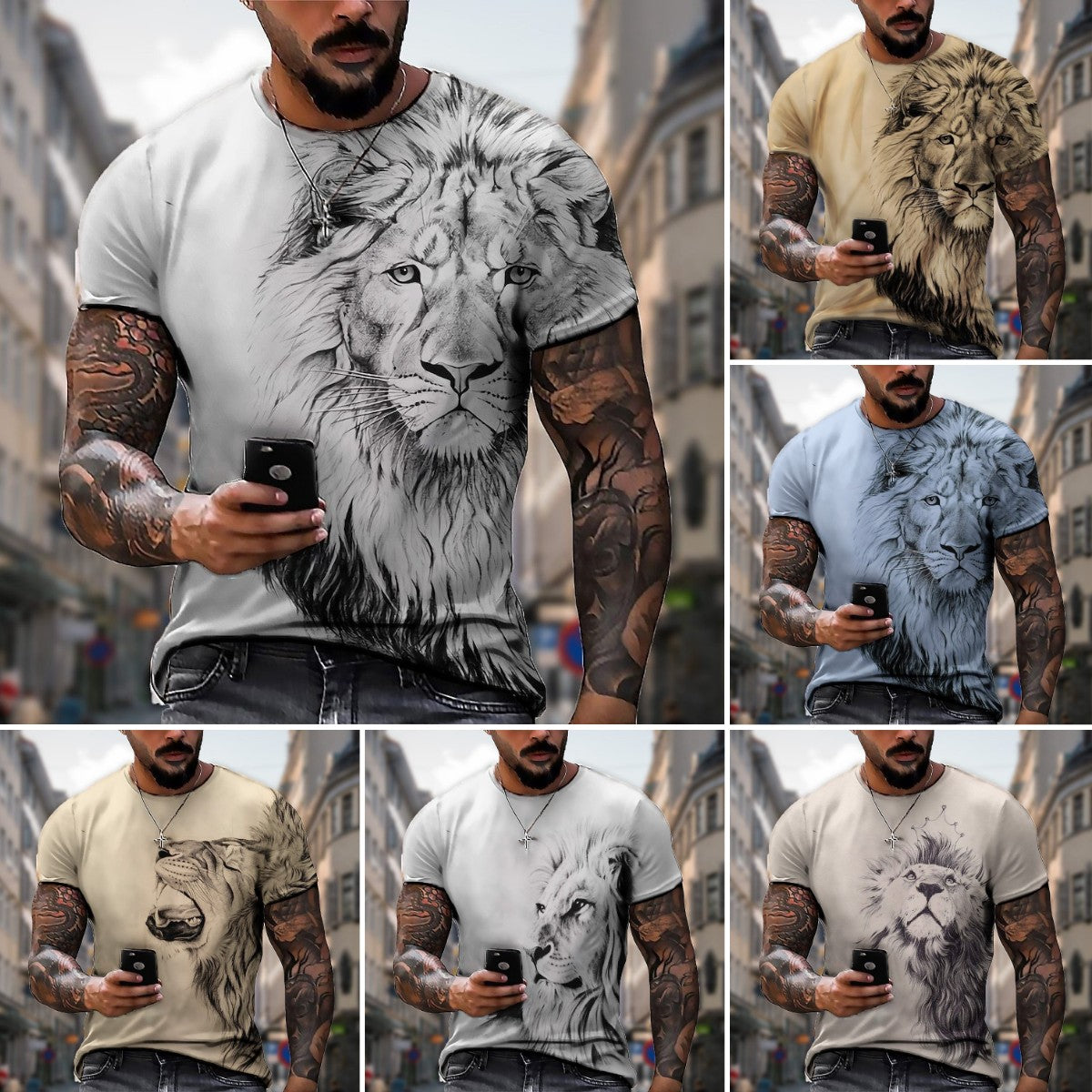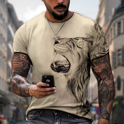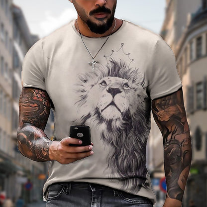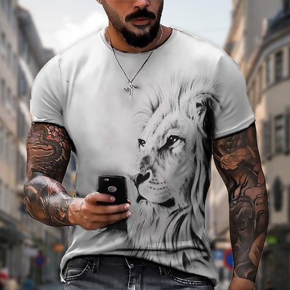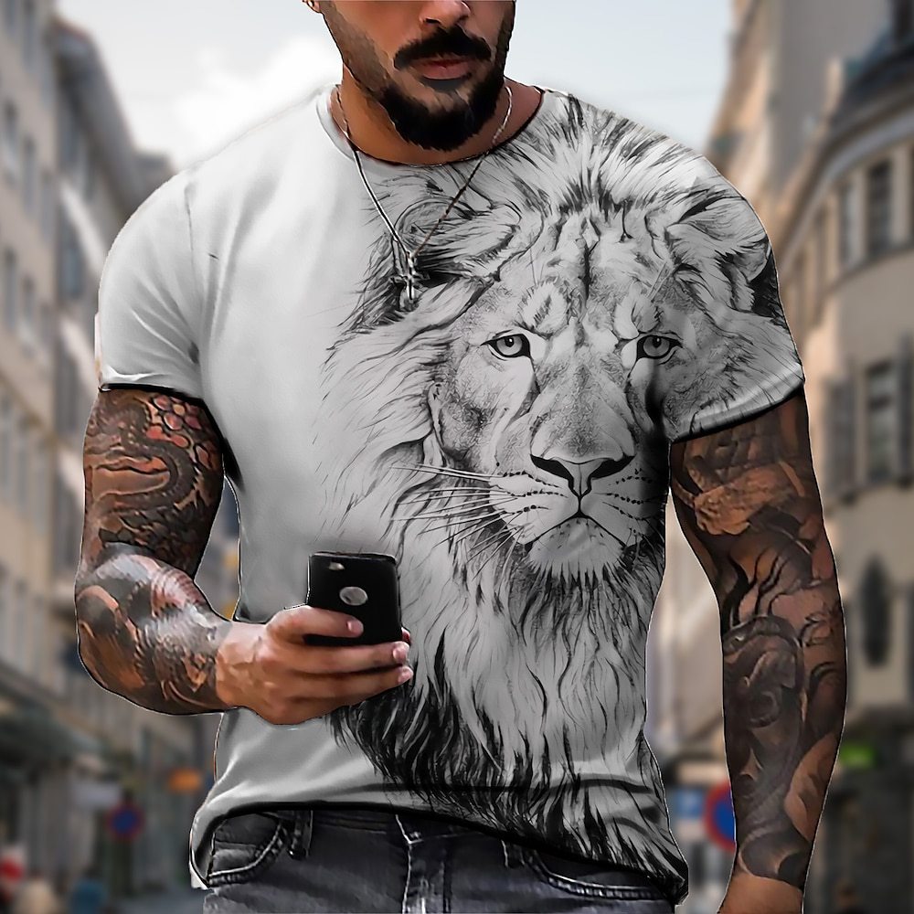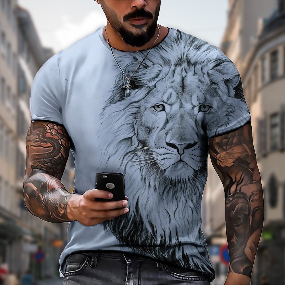 【50% zniżki】【S-5XL】🌞Męski T-shirt z lwem z nadrukiem 3D, duże rozmiary_3625518