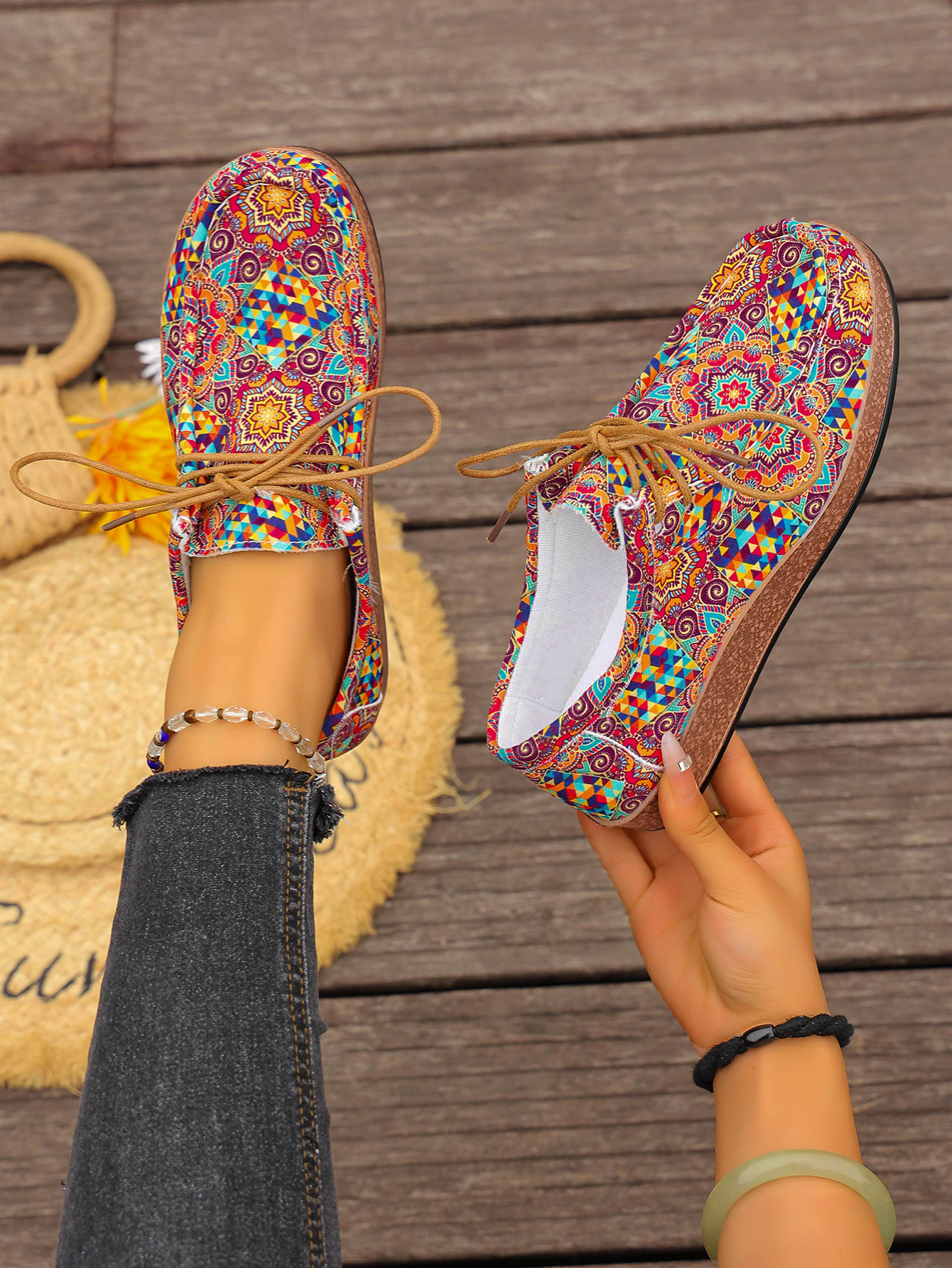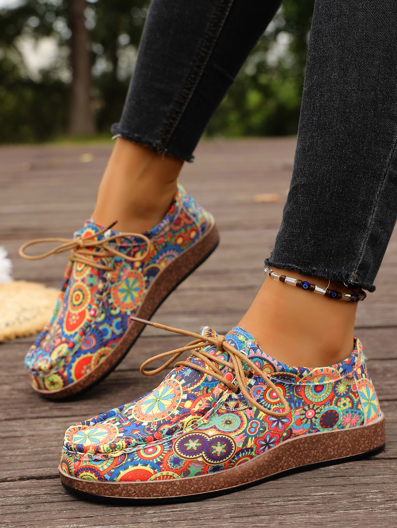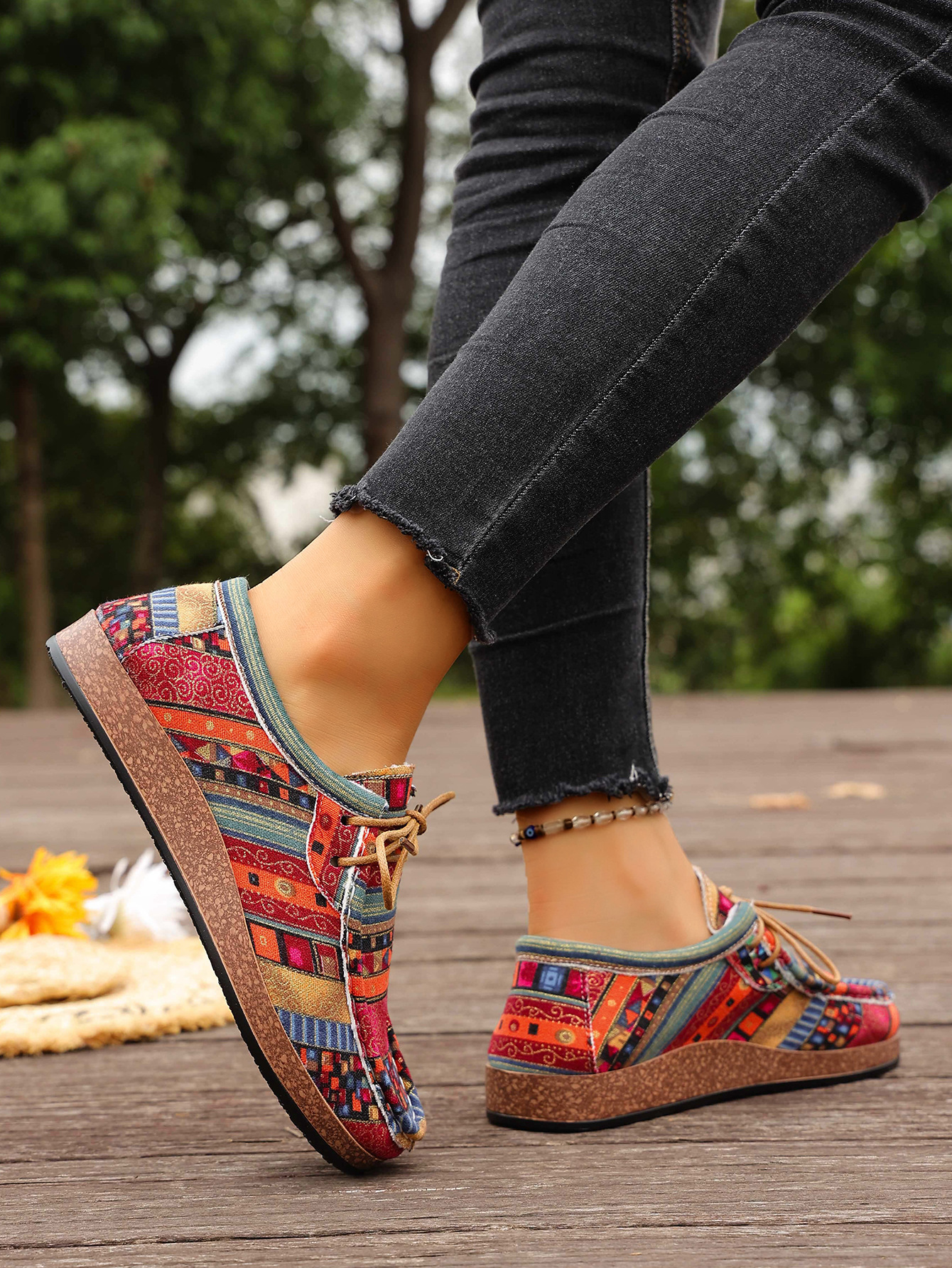 [50% zniżki] Wiosna 2026 Nowe, etniczne, sznurowane buty na co dzień z nadrukiem