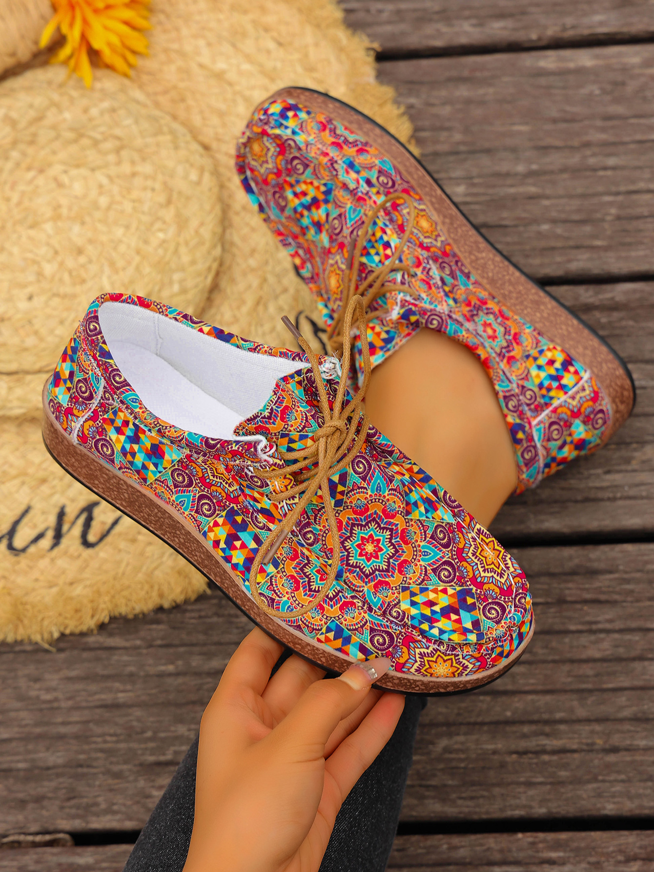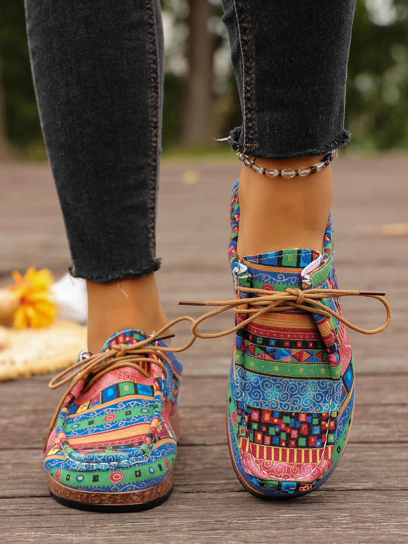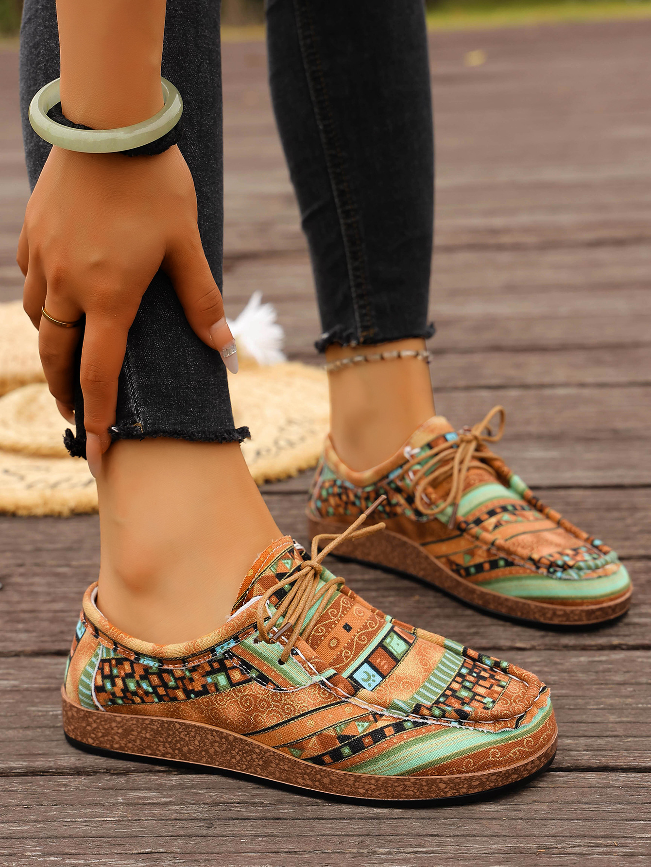 [50% zniżki] Wiosna 2026 Nowe, etniczne, sznurowane buty na co dzień z nadrukiem