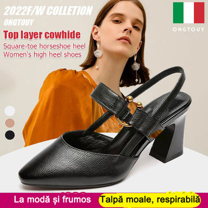 🎊🛒👡[50% zniżki] 💖😍🎁2025 Wiosna i Lato Moda Blokowe Obcasy Skórzane Wysokie Obcasy Wodoodporne i Antypoślizgowe