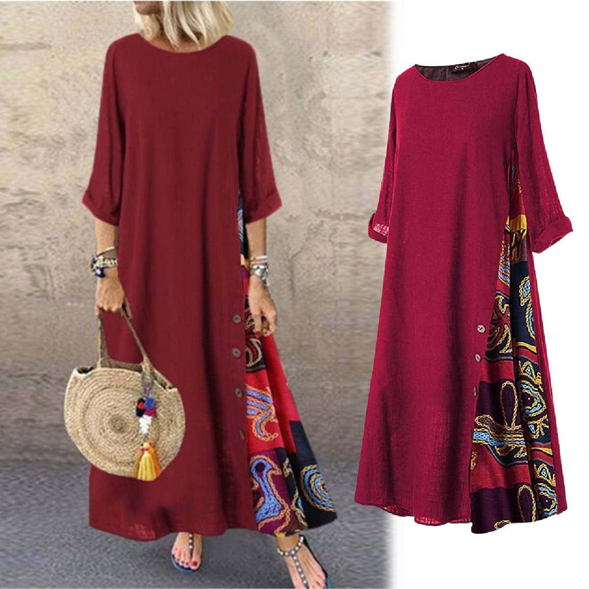 【M-5XL】 Damska elegancka sukienka z nadrukiem w stylu retro