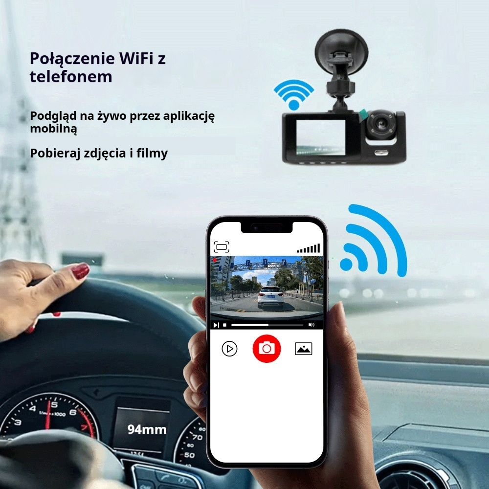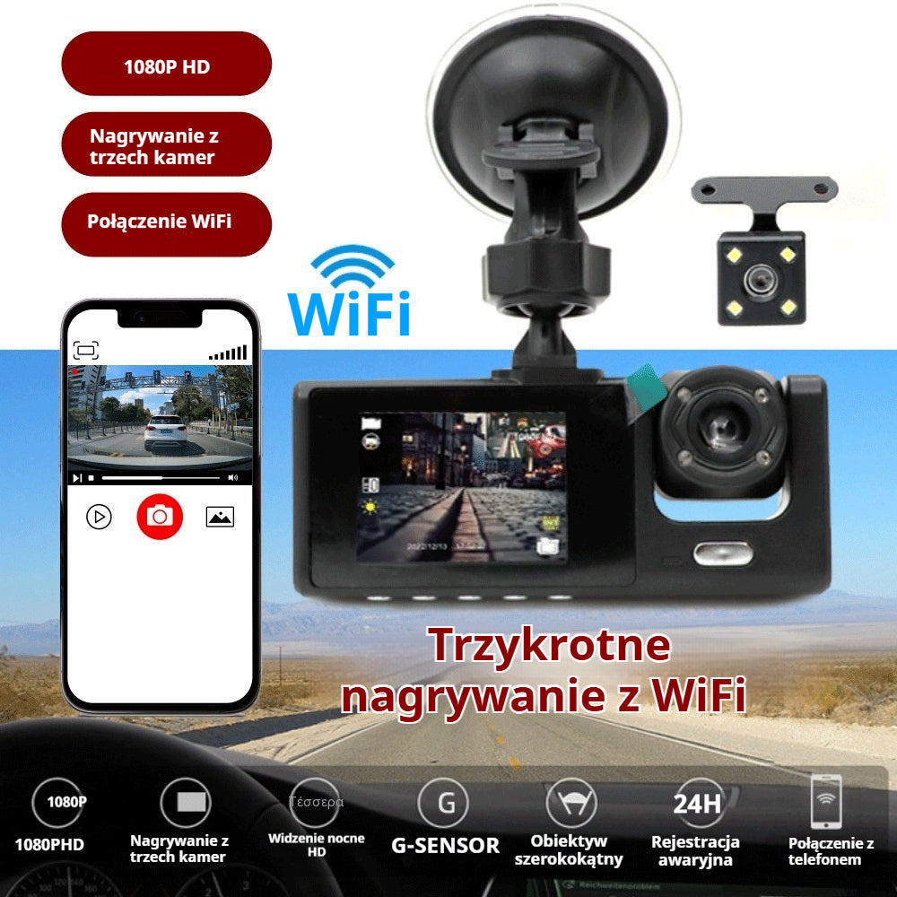 Rejestrator jazdy samochodowy | Full HD 1080p | Z kamerą cofania