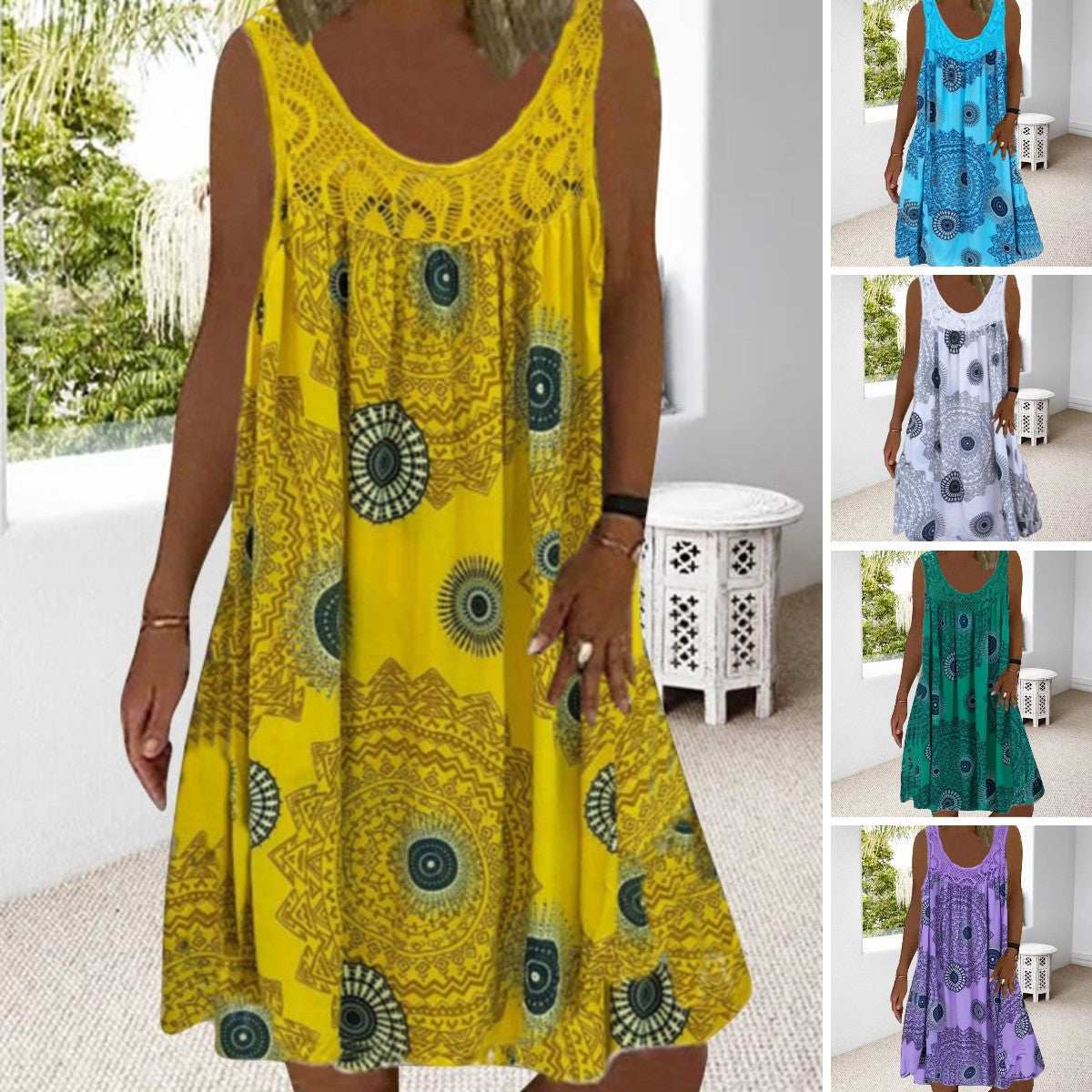 【S-5XL】 Koronkowa, patchworkowa, plisowana sukienka bez rękawów 3696227