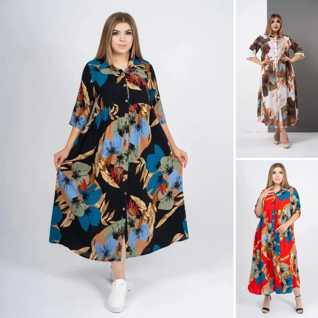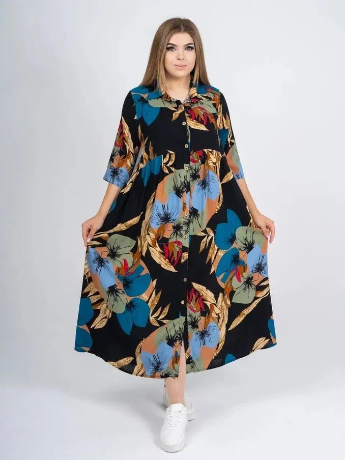 【S~5XL】 Modna, luźna sukienka z nadrukiem w dużych rozmiarach 3673992