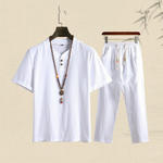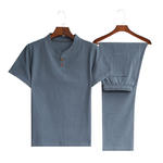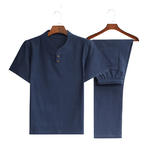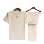 [Top + spodnie] Męski garnitur casual, swobodny i oddychający, wysokiej jakości materiał bawełniany i lniany-3689900